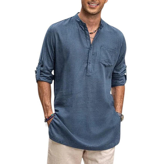 Henley Shirt Men Band Collar Breathable Long Sleeve Casual Fit